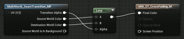 It renders both the source and destination worlds in parallel, using a customizable Material to mix the rendered worlds as desired. Some ready-to-use materials are already provided with the plugin (e.g. MW_ST_CrossFading_M, MW_ST_WipeLeftToRight_M, etc.), but you can create your own effects following the provided documentation.