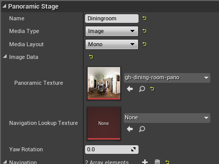 A UPanoramicStage is used to describe how to display a panoramic media and how the user can interact with it (including which other panoramic stages are reachable from this one).