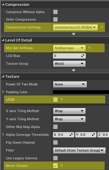 When you import this texture in Unreal Engine 5, you must: